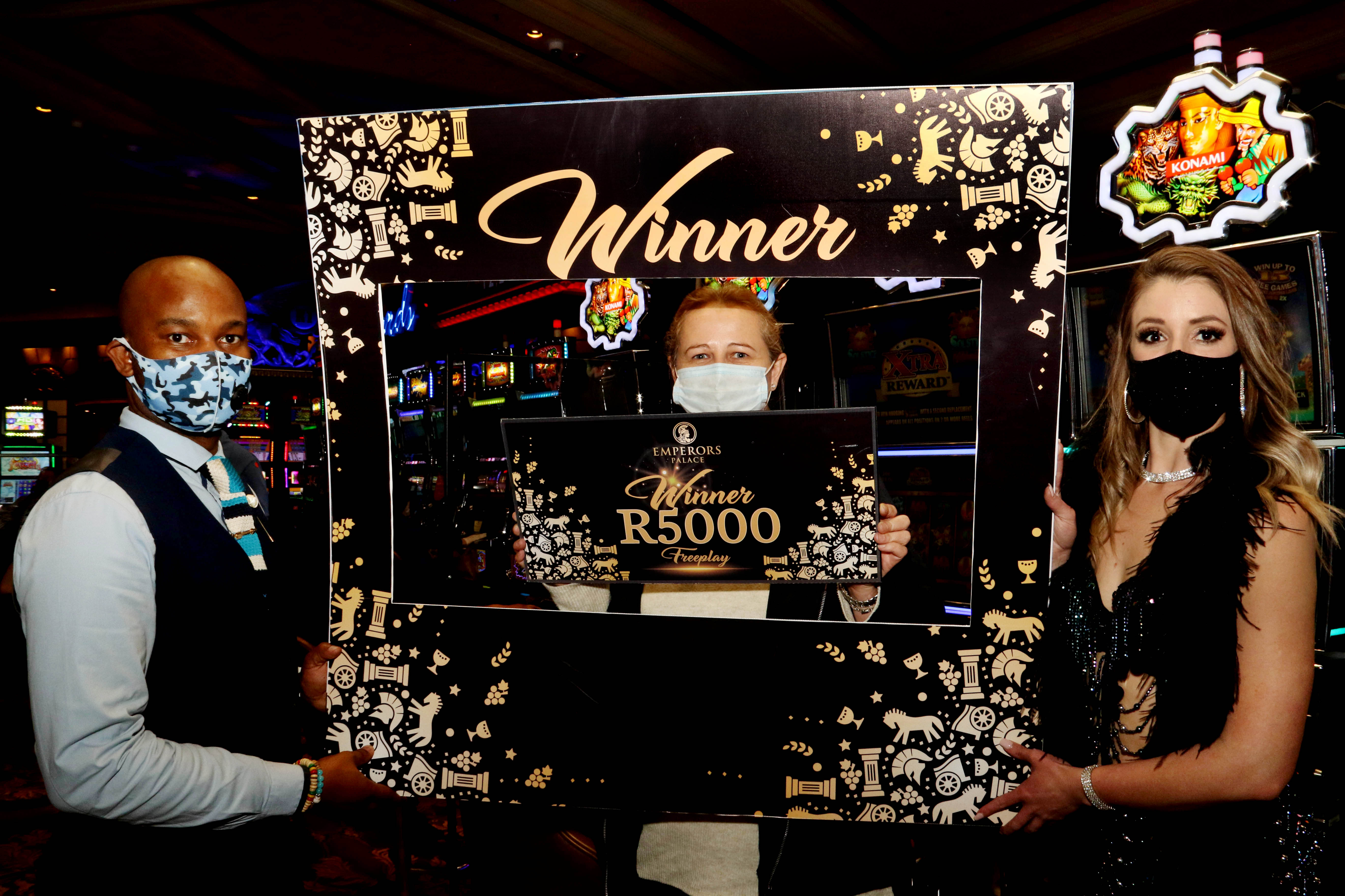 With Level 2 in effect players are feeling more comfortable returning to the Palace of Dreams. On Saturday, 29 August Emperors Palace held its PlayDay promotion rewarding random slots players with R500 FreePlay in mystery jackpots. All winners then qualified for hourly draws that are held in back of house. The winning ticket won R1000 Freeplay, but had the opportunity to at least double it by having their ticket spun on the PlayDay wheel.The big winner on the night was Amelia Holder of Benoni who won R5 000 in FreePlay just for paying slots with a Winners Circle card. Other winners included Andre Janse van Rensburg of Windgate Park, who won R4000 FreePlay and Boksburg’s Cynthia Selales, taking home R3000 FreePlay.
