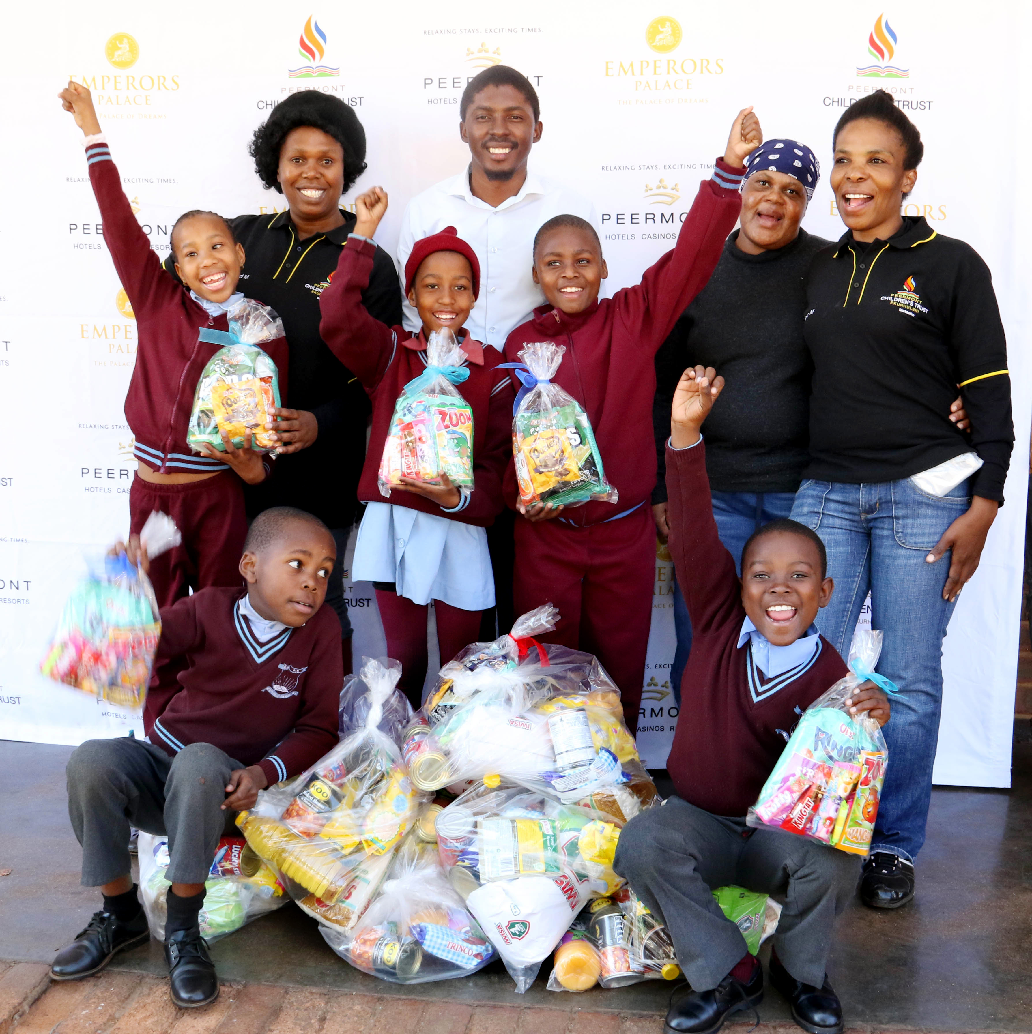 Before the start of the June school holidays Peermont Children’s Trust Manager, Thomas Masango visited the seven primary school aftercare centres supported by the Trust in Ekurhuleni to deliver food parcels to help keep centre learners nourished during the holidays. On Monday morning, June 18, he visited Nageng Primary School Aftercare Centre in Vosloorus and assisted the centre’s practitioners, Ingrid Moake, Matseko Makgalemele and Salfi Mabowa hand out parcels to these grateful learners. Apart from these parcels learners from the centres, which have 22 affiliated primary schools, also get new uniforms at the start of each new school year, are treated to a Christmas party annually and benefit from a feeding scheme and supervised aftercare during the school term.