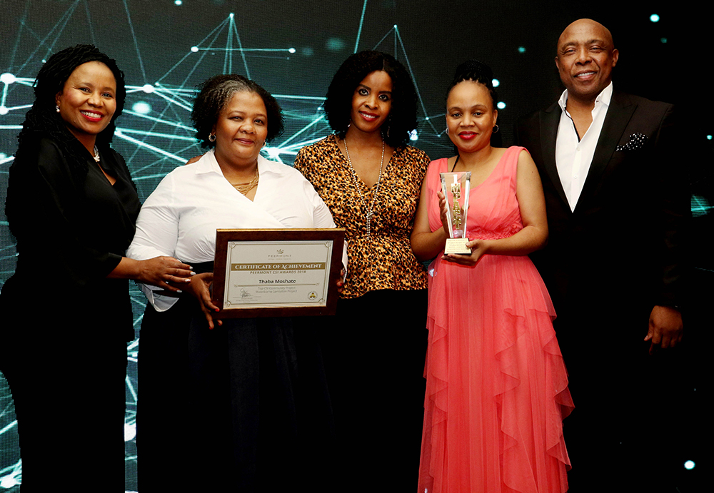 On Friday evening, August 16 Peermont Hotels Casinos and Resorts held its annual CSI Awards which celebrates and recognizes the hard-working people that make Peermont CSI community projects a success, at Emperors Palace in Gauteng. During the evening Thaba Moshate Hotel, Casino and Convention Resort in Burgersfort received the “Top Community Project” award for Peermont properties for its Waterborne Sanitation project. Collecting the accolade was Thaba Moshate’s Charlene Ludick (General Manager), Crystal Bezuidenhout (Human Resources Manager) and Matseke Malekana (Finance Manager) who are pictured here with Peermont Human Resources Executive, Fihliwe Molefi (left) and Peermont Deputy CEO, Thabo Mokoena.