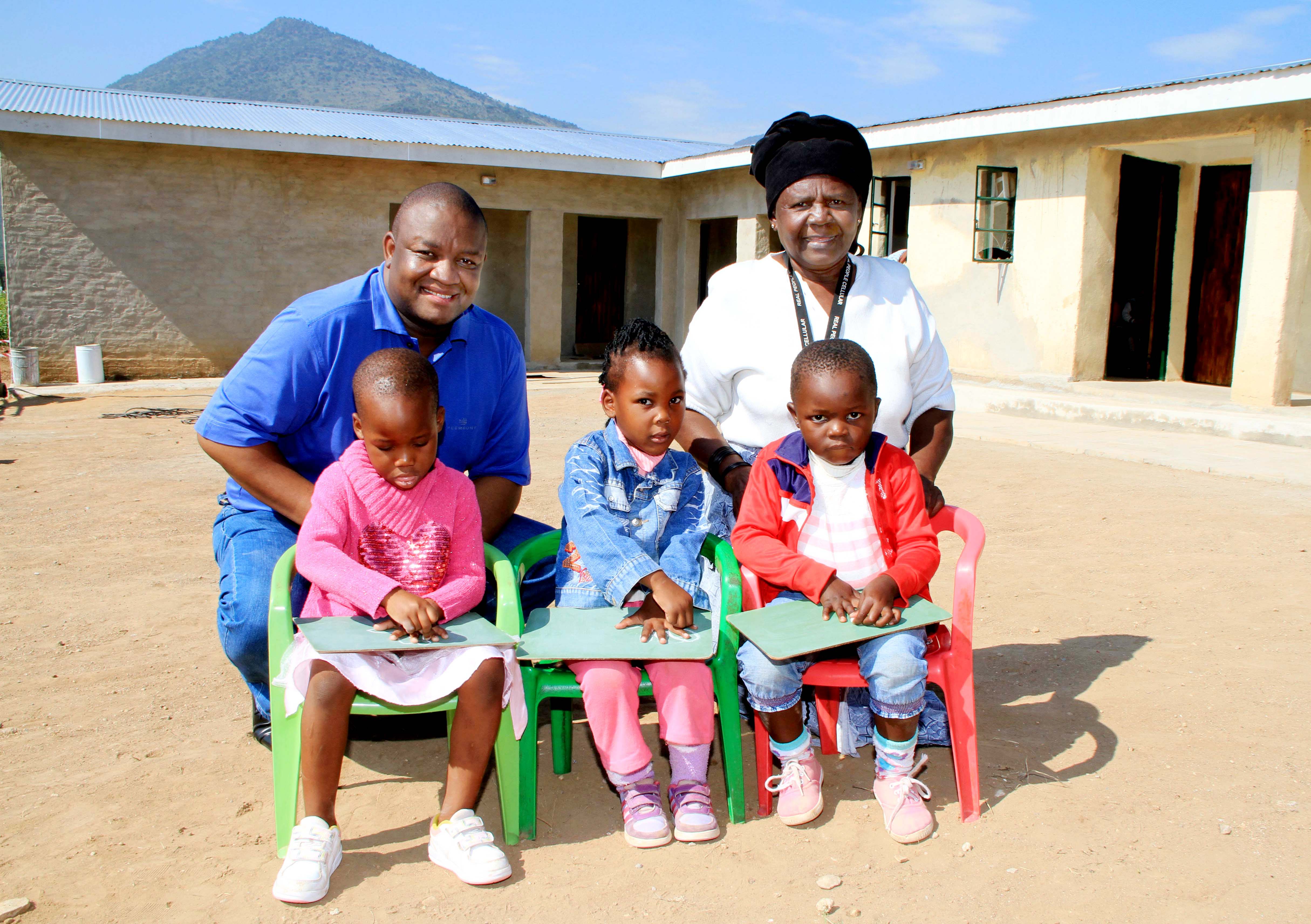 As part of its commitment to uplifting the local community Thaba Moshate Hotel Casino and Convention Resort, Peermont’s new property in Burgersfort, is helping to improve Mmasethankga Crèche, a facility for pre-schoolers situated near the resort. Started by Shirinda Shibundela Roza in a shack in 2001, the crèche moved to a two classroom building (structure on the right) in 2010. With the help of Thaba Moshate, in conjunction with Breet Construction, Mmasethankga is currently being expanded with two new classrooms, bathroom facilities and a kitchen being added. Here Thaba Moshate’s General Manager, Clifford Ngakane is pictured with Roza and two of the learners, Kgalalelo Mashego and Kgopotso Thokwane in front of the buildings during a visit to see how the expansions are progressing on Thursday morning, April 23.