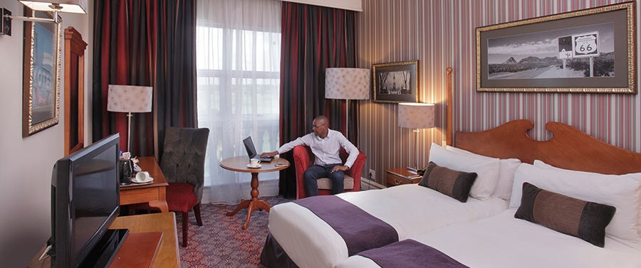 Take a moment to just stand in awe as your line of sight wanders from one corner to the next of the Victorian-American themed Graceland Hotel. The 4 Star Walmont Hotel at Graceland offers 98 rooms and suites, all featuring panoramic views of the golf course and pool terrace. The décor and furnishings of the Peermont Walmont embody traditional Victorian-American elegance and continue from the foyer right into guest rooms. The rooms incorporate all the facilities demanded by today’s discerning traveller, including air-conditioning, satellite TV, WiFi and 24 hour room service.